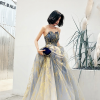 Stylish Tulle Sequins Long Prom Dress, A-Line Strapless Evening Party Dress