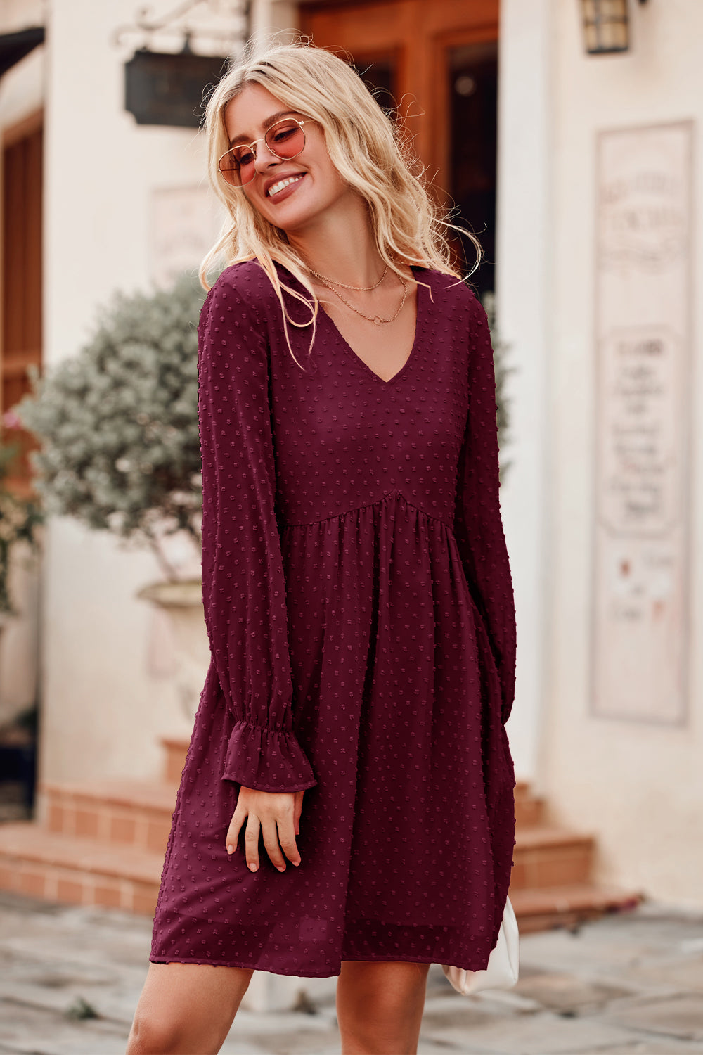 Swiss Dot Loose Fit Babydoll Mini Dress
